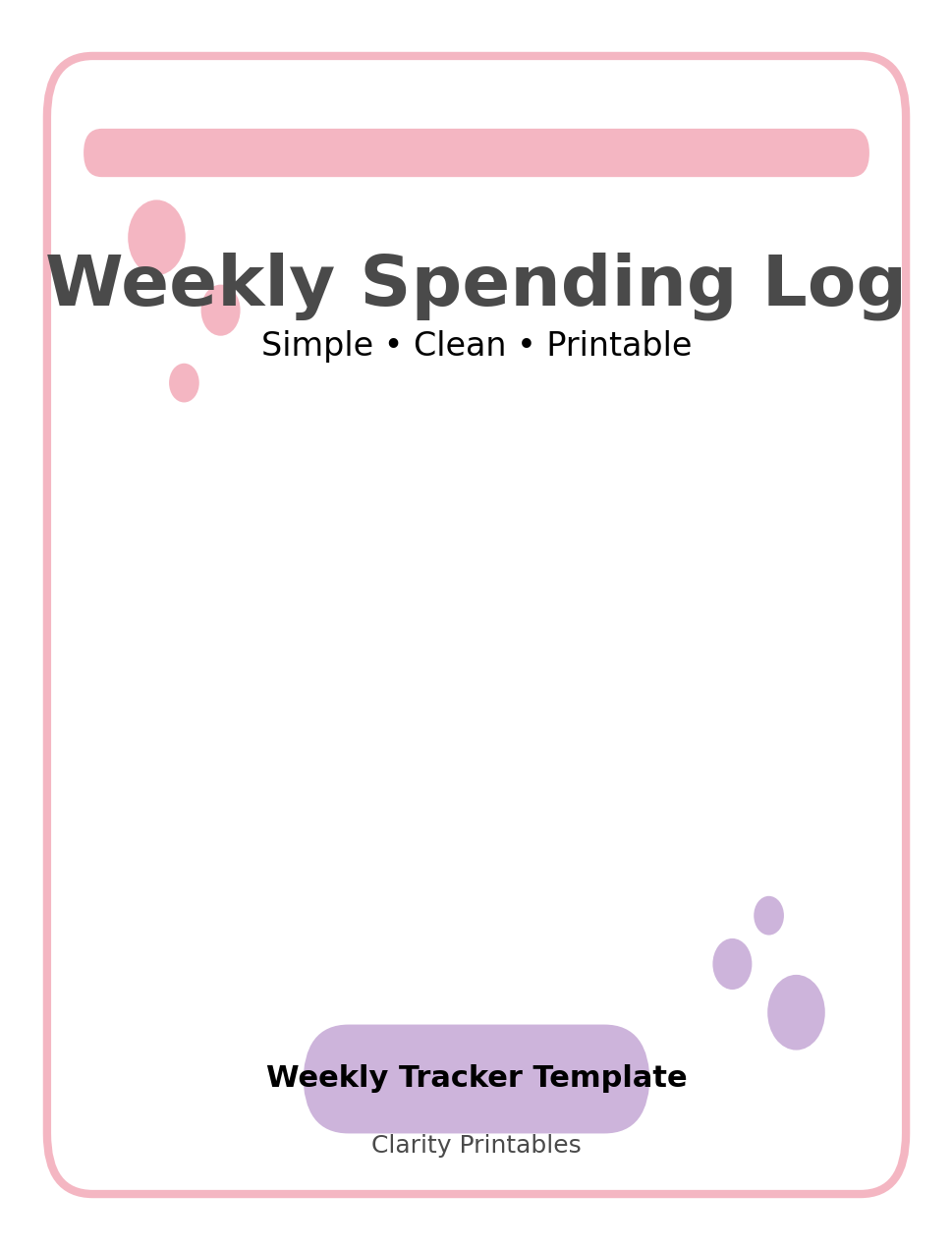 Take control of your spending one week at a time! This Weekly Spending Log is a simple and printable tool designed to help you track daily expenses, calculate weekly totals, and reflect on your habits. Perfect for beginners, busy moms, students, and families who want to manage money with less stress and more clarity.